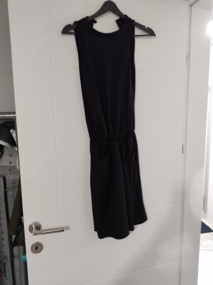 yüksek yaka ve kolsuz siyah tulum, vücuda oturan kesimiyle minimalist sokak stili sunar. Günlük kullanım için uygundur.