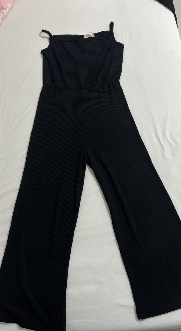 Yumuşak sentetik kumaştan yapılmış, yüksek yakalı ve kolsuz, siyah fitted tulum. Midi boy ve minimalist, zahmetsiz şıklık sunar, günlük kullanıma uygundur.