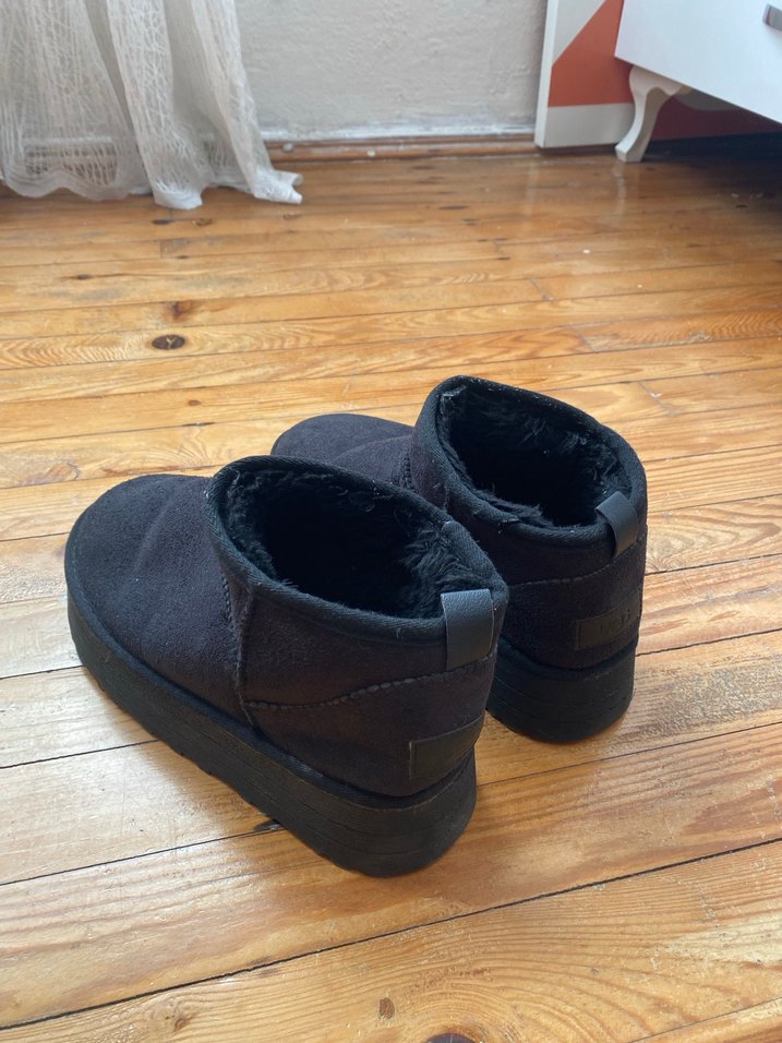 Siyah dolgu topuklu, yumuşak ve rahat iç astarlı botlar. Kauçuk malzemeden, desensiz ve şık bir görünüme sahip.ugg bot