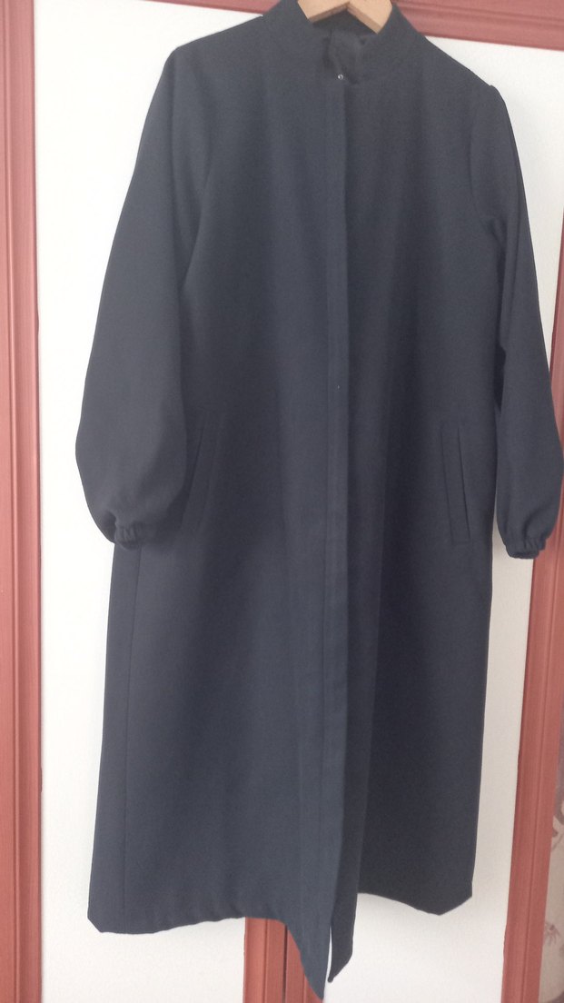 Siyah renkte, uzun boy, bol kesim ve drapeli kadın kabanıdır. Yüksek yakalı ve uzun kolludur, ofis kullanımı için uygundur.