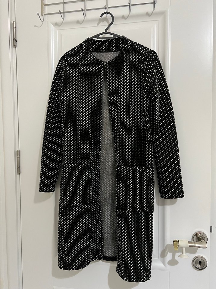 Önden kancalı şık ceket/tunik. Ön kısmında iki adet cep mevcut. Bahar aylarında trençkot olarak kullanmıştım .