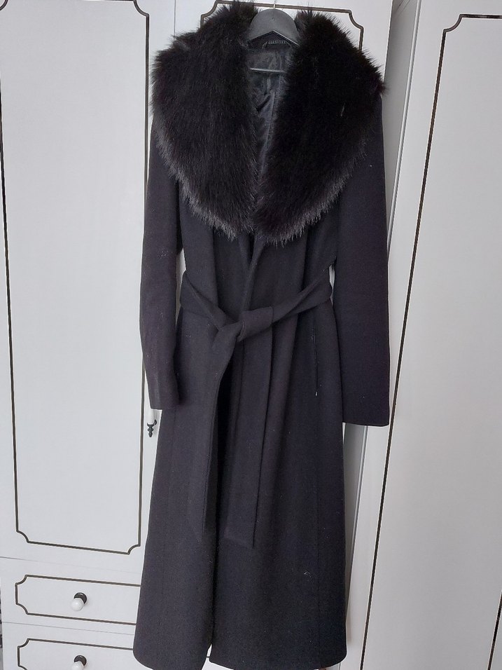 Siyah renkli, bol kesim ve kemerli kadın denim palto. Uzun kollu, normal boy midi uzunluğunda, minimalist tarzda günlük kullanıma uygun. kurk detayi kirtabilinir yanlari gizli cep fermuarli sadece 1 kez giyilmis etiketini cikardim ben daha spor giydigim icim satiyorum harika dokusu var tivtiklenmeyen