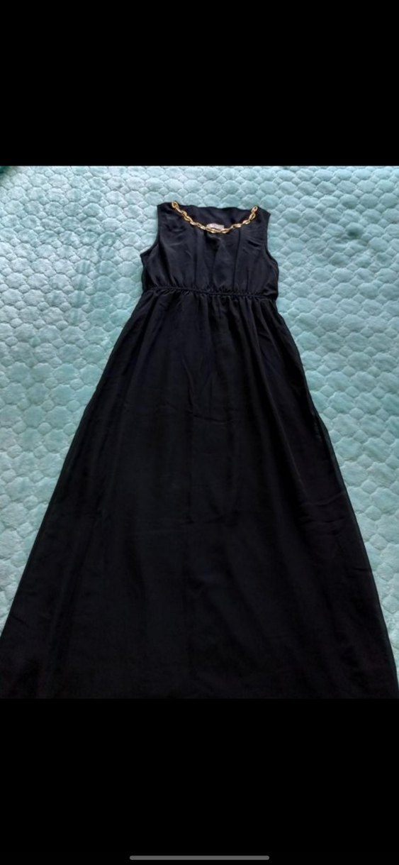 Siyah Kadın Uzun Drapeli Elbise