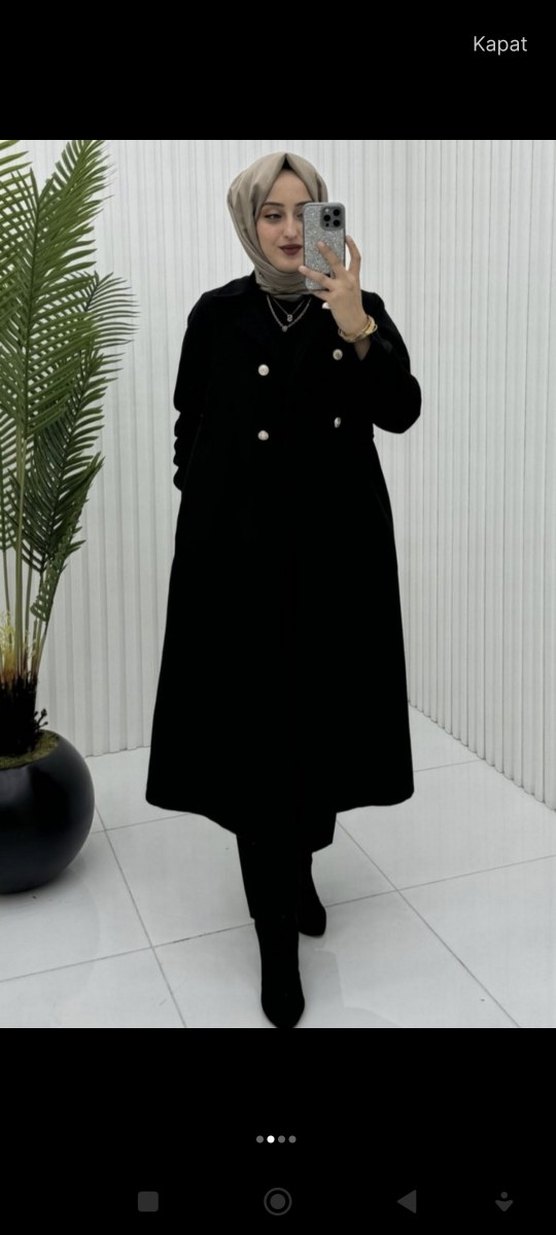 Siyah uzun düğmeli trençkot, yakalı ve yumuşak sıcak kumaştan, klasik günlük kullanım için uygun, düz kesim ve uzun kolludur. ürünü aldım bedeni uymadı çok kaliteli kaşe kaban alan pişman olmaz bedeni uysa satmazdim aynı ürünü bedeni uyanı sipariş ettim marka temsili