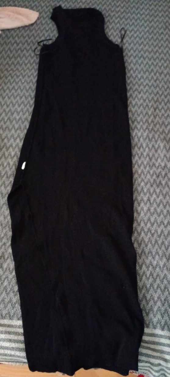 Siyah, sentetik kumaştan yapılmış, drapeli ve dar kesim uzun kadın elbisesi . Günlük kullanıma uygundur ✨