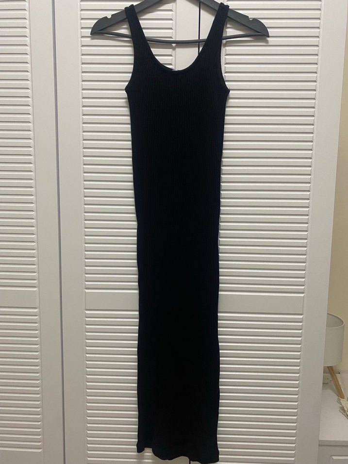 Siyah Kadın Uzun Elbise, Kolsuz, Dar Kesim