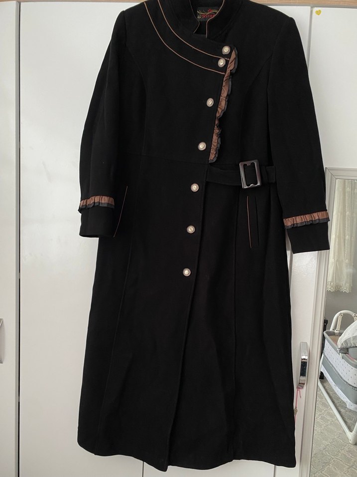 Bir ya da iki kere giyildi hiçbir defosu yok 48 beden uyumlu omuzlarında Vatka var belinde kemeri var yeni gibi duruyor  kaliteli kumaştan yapılmış gayet sıcak tutuyor