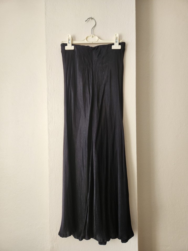 Siyah uzun saten etek. Şık ve günlük kullanım için uygundur.