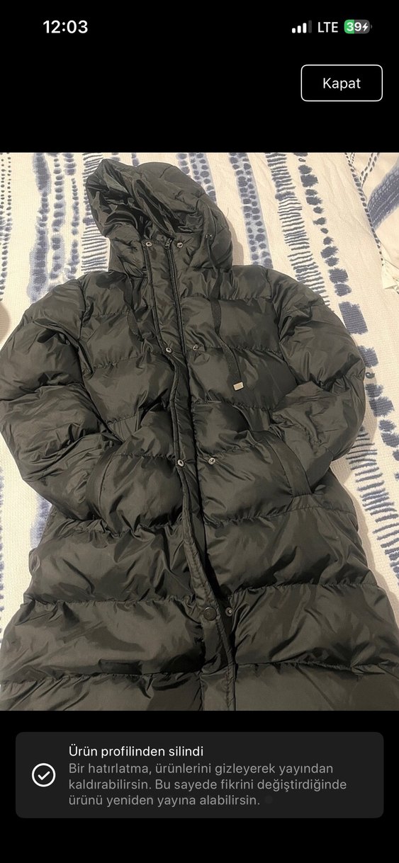 Siyah, uzun, kadın kışlık mont, kapüşonlu ve strappy kollu, yumuşak sentetik kumaştan. Notched lapel detayıyla rahat ve şık, günlük kullanıma uygun. ❄️ S beden. Kısa süre giyildi resimde görüldüğü gibi sorunsuz