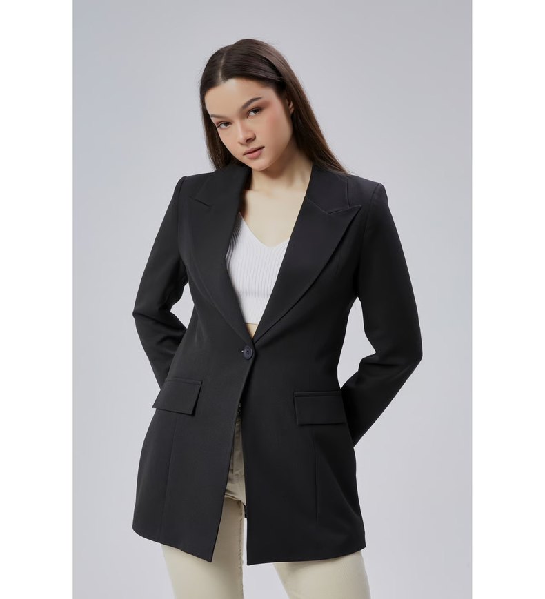 Siyah Kadın Uzun Kol Ofis Blazeri