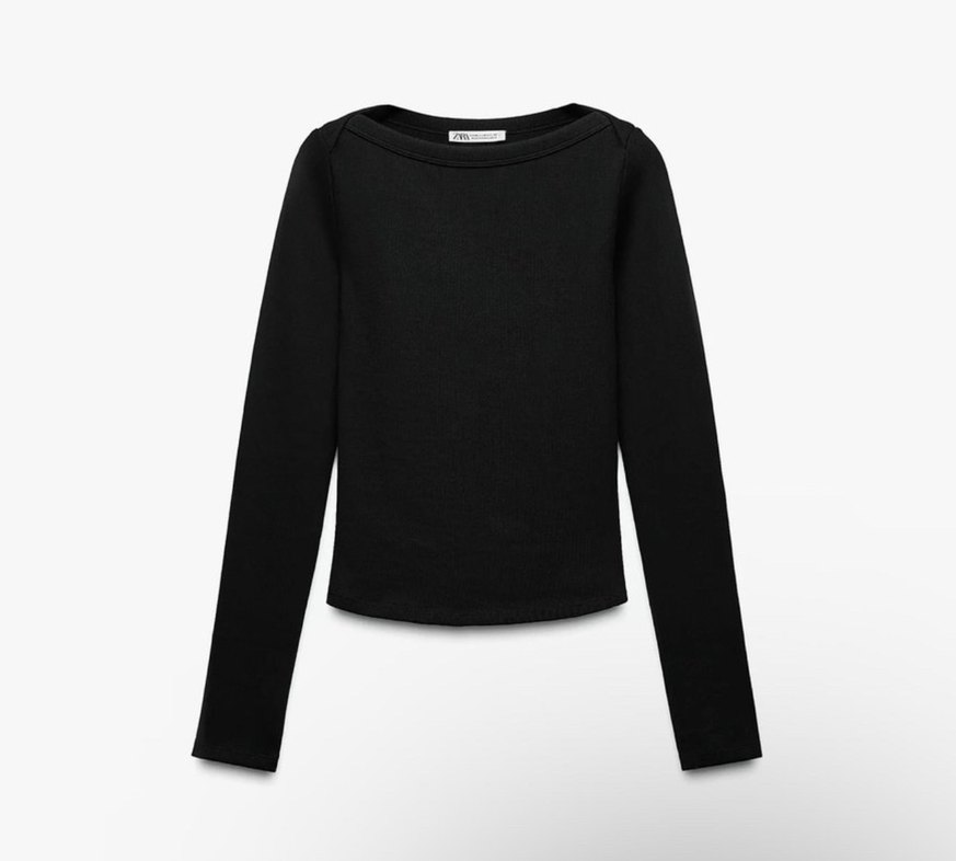 Siyah, uzun kollu, yuvarlak yakalı, vücuda oturan, normal boyda kadın kazak. Sentetik kumaştan yapılmış, desen içermeyen minimal tasarım, günlük kullanım için uygundur.