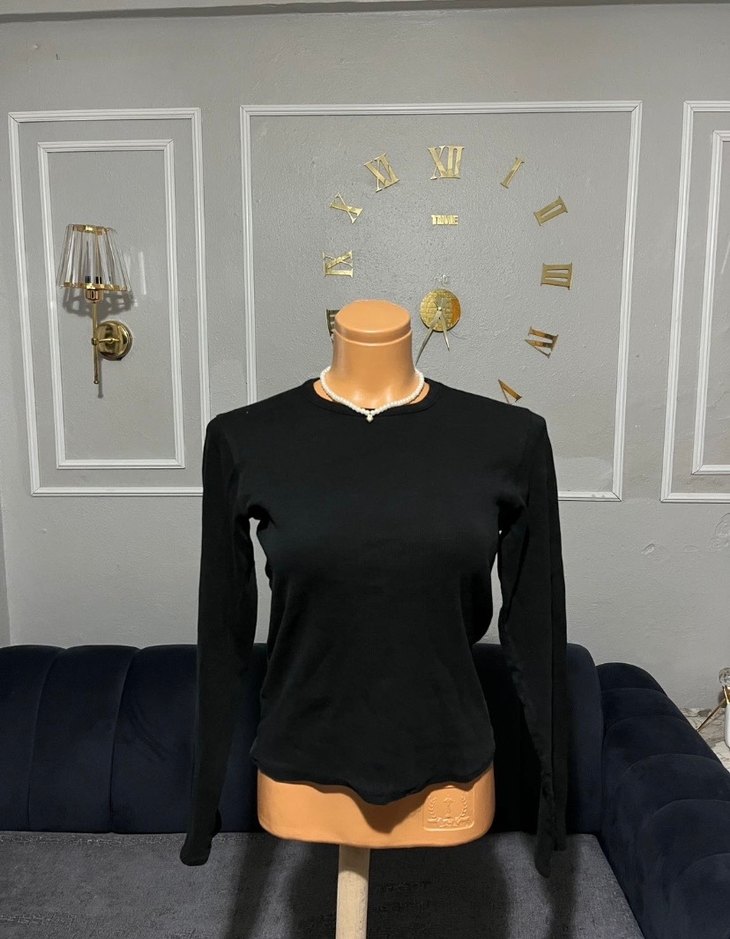 Siyah Kadın Uzun Kollu Bisiklet Yaka Kazak