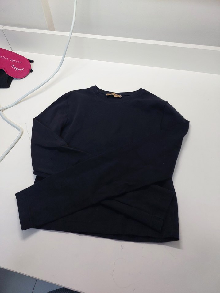 Siyah renk, uzun kollu, yuvarlak yaka ve rahat kesime sahip kadın Bluz. Yumuşak ve sıcak dokusu günlük kullanıma uygundur.