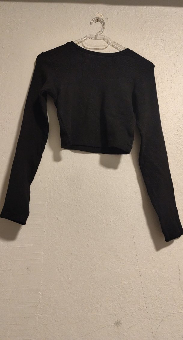 Siyah Kadın Uzun Kollu İnce Kesim crop Kazak - Görsel 1