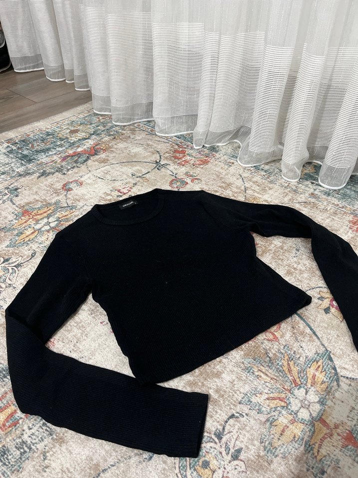 Siyah, uzun kollu ve bisiklet yaka kadın trikp, ince kesimi ve yumuşak kumaşıyla rahat ve şık bir günlük giyim. S/M uyar. Fitilli esnek kumaş. Renk solması yoktur.