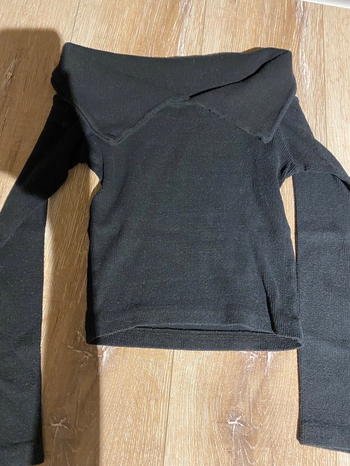 Siyah Kadın Uzun Kollu Omzu Acik Triko Bluz