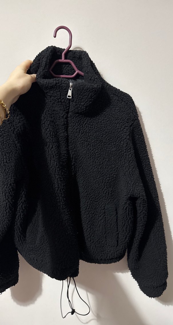 Siyah Kadın Uzun Kollu Peluş Ceket