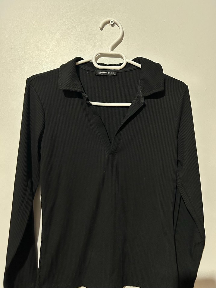 Siyah Kadın Uzun Kollu Polo Yaka Bluz