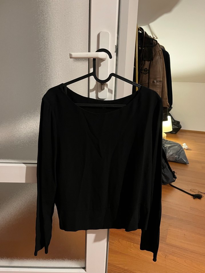Siyah, uzun kollu, salaş kesim kadın kazak. İpek gibi dokusuyla minimalist ve gotik tarzda, günlük kullanım için uygundur.