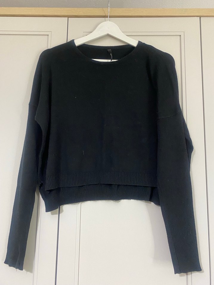Siyah renkte, keten kumaştan, yuvarlak yakalı ve uzun kollu, salaş kesime sahip kadın trikosudur. Minimalist ve normcore tarzıyla günlük kullanıma uygundur.