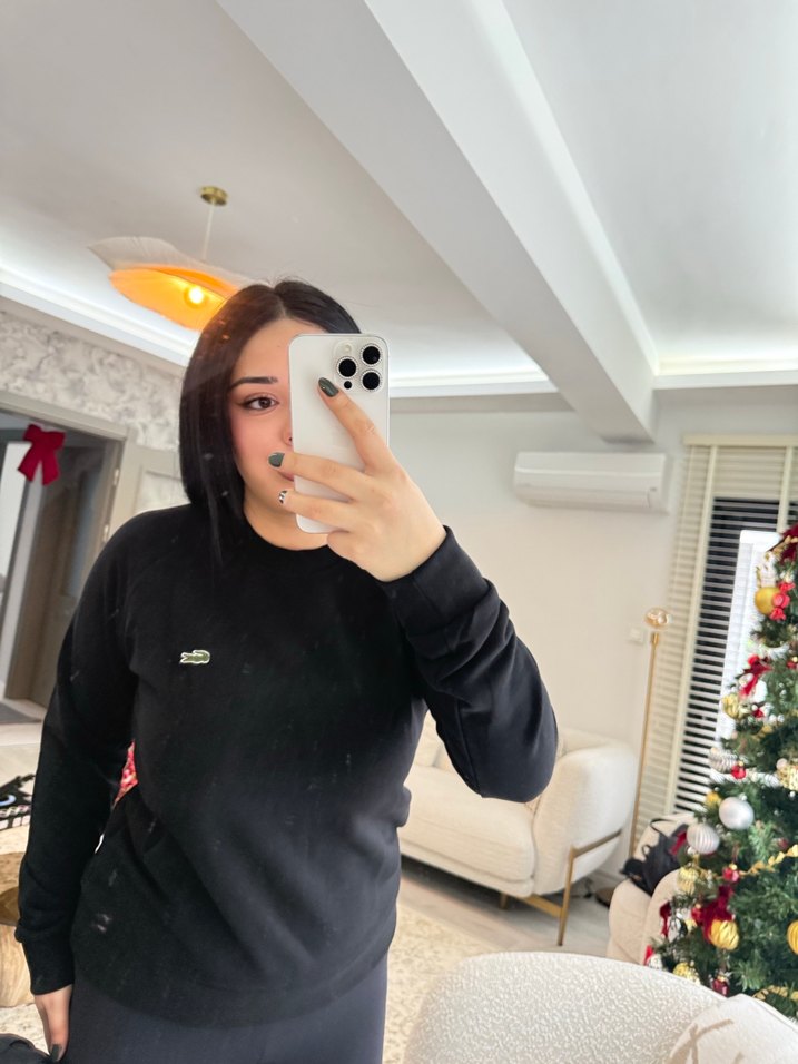 Siyah, uzun kollu ve bisiklet yaka olan bu dar kesim sweatshirt, yumuşak ve sıcak kumaştan üretilmiştir. Günlük kullanıma uygun, rahat ve şık bir sokak stili sunar. S M L XL bedenleri mevcuttur