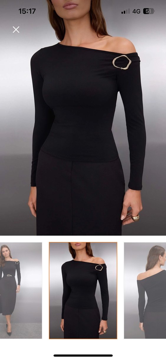 Siyah Kadın Uzun Kollu Tek Omuz Bluz