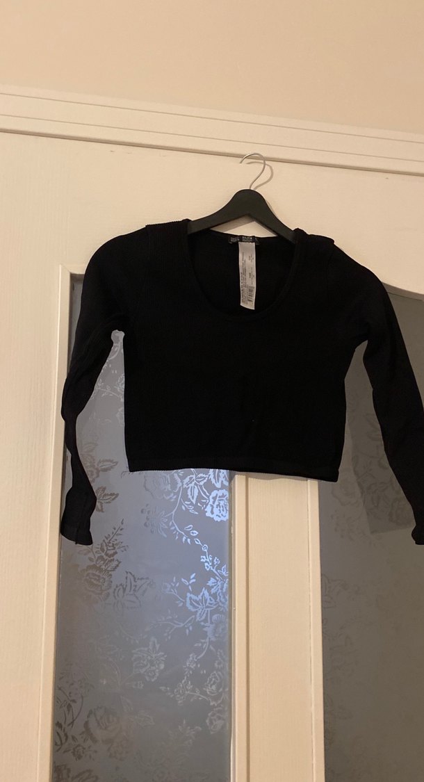 Siyah Kadın Uzun Kollu Triko Crop