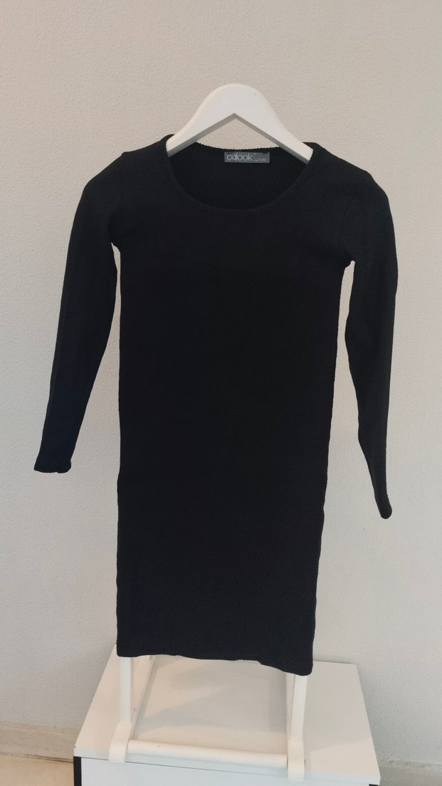 Dar kalıp XS S beden uyumludur. Siyah uzun kollu, bisiklet yaka triko elbise, vücuda oturan kesimi ve midi boyuyla sade gotik tarzını yansıtır. Günlük kullanım için uygundur.