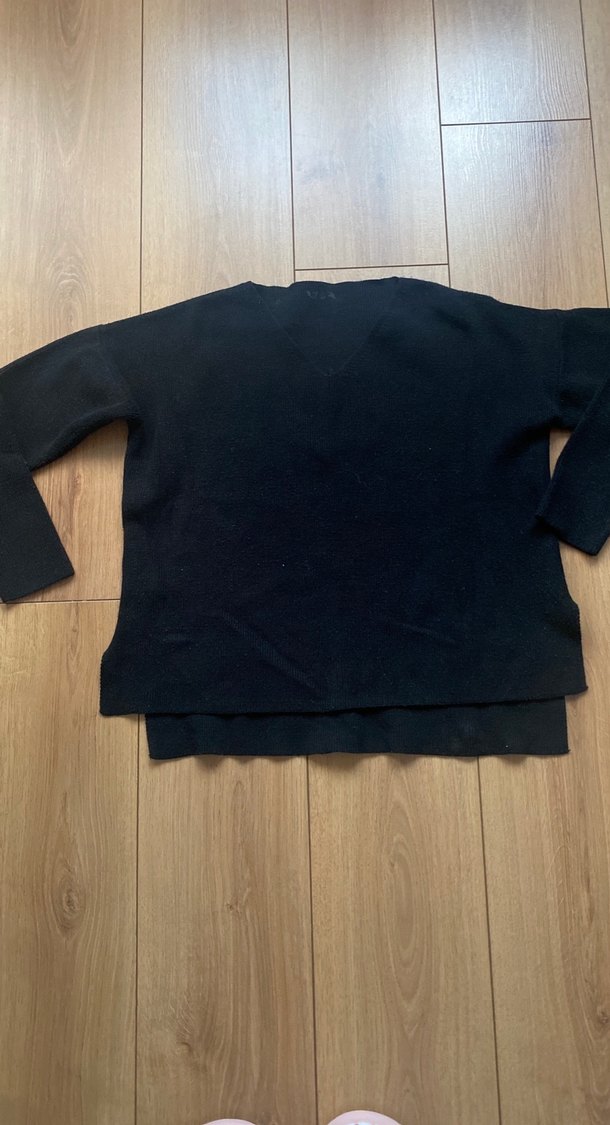 Siyah Kadın Uzun Kollu V Yaka Kazak