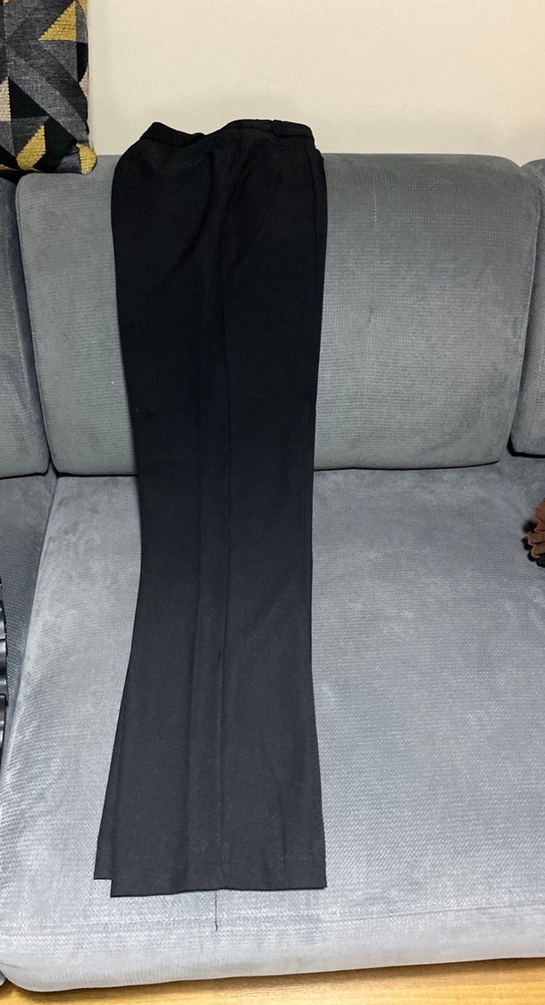 Siyah renkli, uzun boy ve regular fit kesime sahip kadın kumaş pantolon. Sentetik kumaştan üretilmiş, yanlarında yırtmaç detayı bulunur. Ofis ve gündelik kullanıma uygundur.
