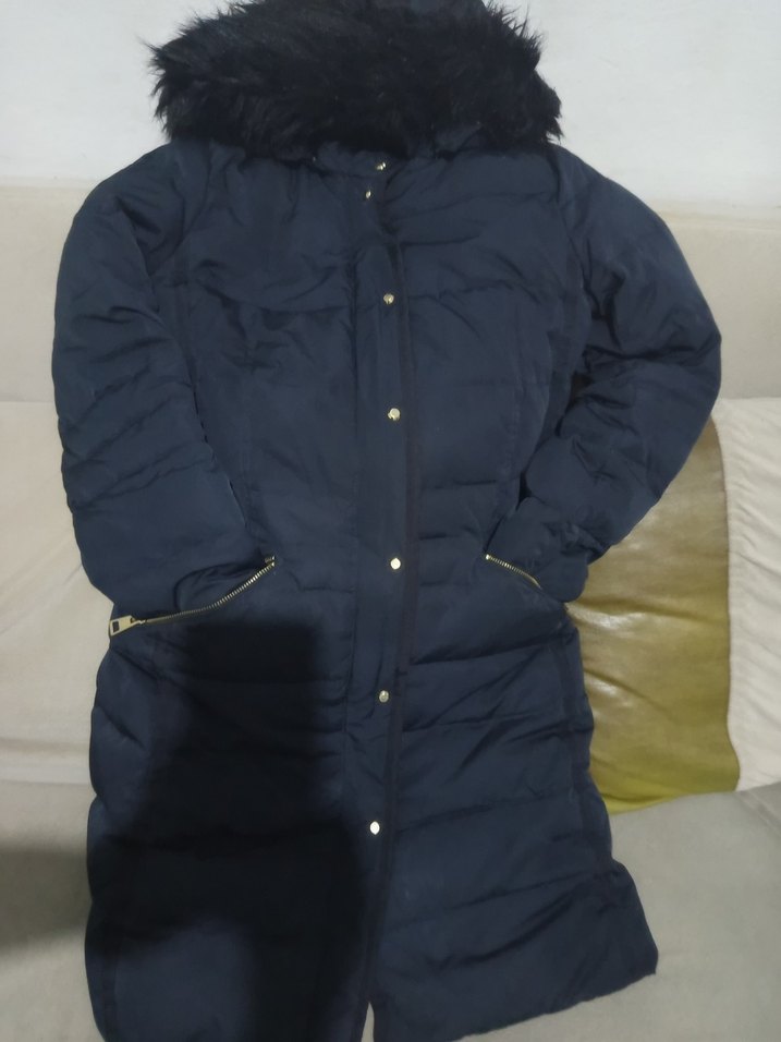 Siyah, uzun, kürklü detaylı, yumuşak dokulu kışlık kadın mont. Fitted kesim, yakası kesik ve uzun kollu, rahat ve şık sokak stili için uygun. ❄️