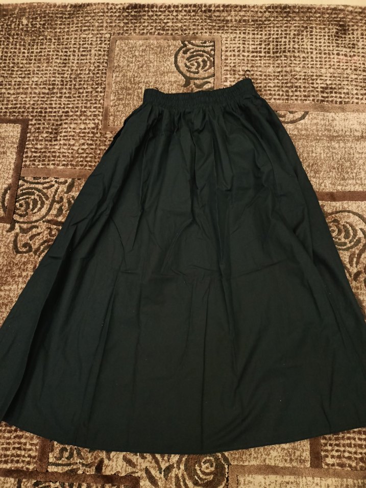 Siyah uzun piliseli etek, sentetik kumaştan üretilmiş, bol kesim ve sade minimalist tarza sahiptir. Günlük kullanıma uygundur.