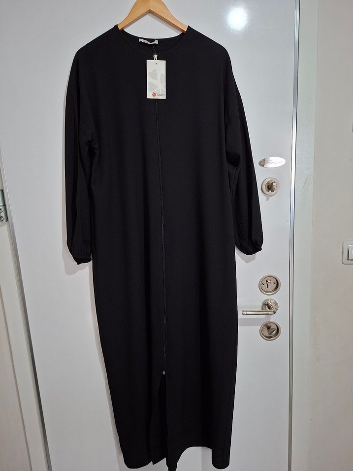 Siyah renkli, uzun kollu ve yuvarlak yakalı salaş kesim ferace, yumuşak ve sıcak kumaştan üretilmiştir. Minimalist sokak stilini yansıtan rahat ve şık bir tasarım sunar. modanisa dan alındı markası Tavin standart beden yazıyordu 36-46 beden arası için uygunmuş ben 48-50 bedenim bol giyinmeyi seviyorum bi tık dar oldu bana hiç giyilmemiş yeni ve etiketli olarak satışa sunuyorum bu fiyata kaçmaz fermuarlı giy çık model iki kol arası 60 cm boy 142 cm