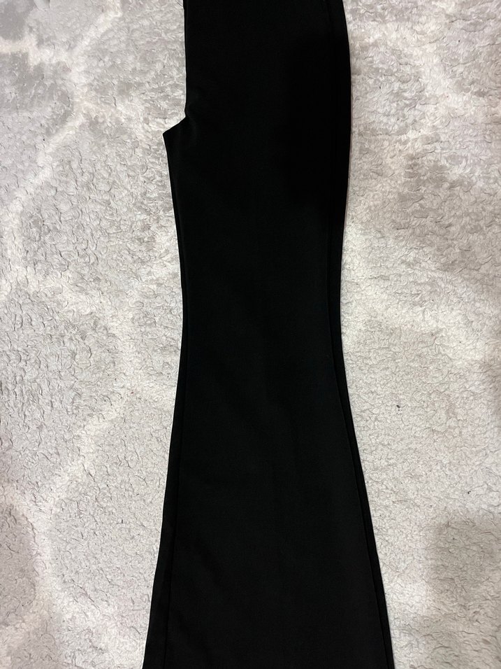 Siyah, uzun, yumuşak kumaştan yapılmış kadın pantolonu. Regular fit ve gotik tarzda, günlük kullanıma uygun.