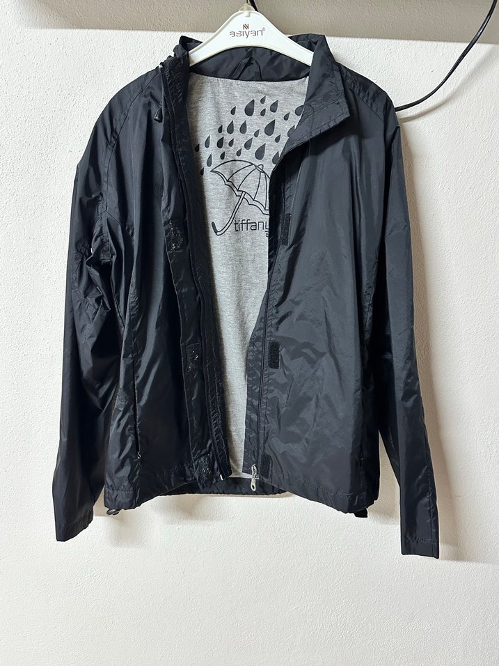Siyah, fermuarlı, yüksek yakalı, uzun kollu ve midi boyda, sade tasarımlı kadın yağmurluk. Bir kere giyildi defosu yok teklif verirseniz değerlenirebilirim
