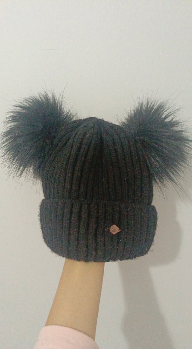 Siyah yün bere, kürk detaylı, rahat ve gotik tarzda. Koyu renkli, rock punk havası veren yumuşak dokulu bere.