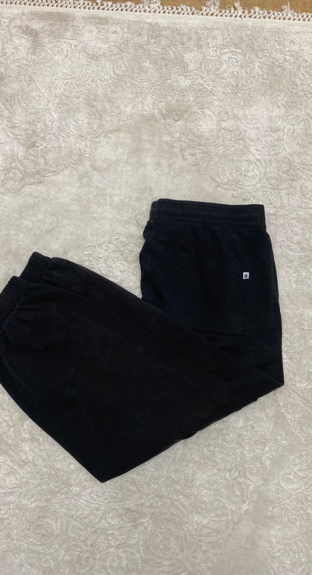 Siyah renkte, rahat kesimli ve yumuşak dokulu kadın sweatpants. Normal midi boyda, desensiz ve günlük kullanıma uygun.