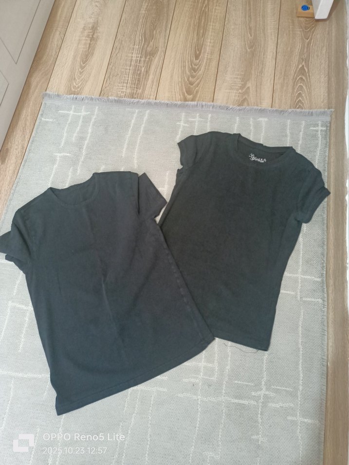 Yumuşak kumaştan yapılmış, kısa kollu iki siyah Günlük kullanım için rahat ve sade tasarım.