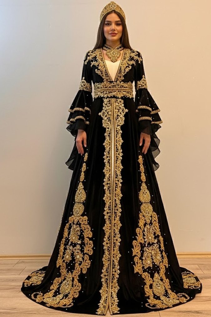 Siyah işlemeli, uzun kollu tesettür veya açık olarak tercih edebilirsiniz 36 bedenden 50 bedene kadar mevcuttur