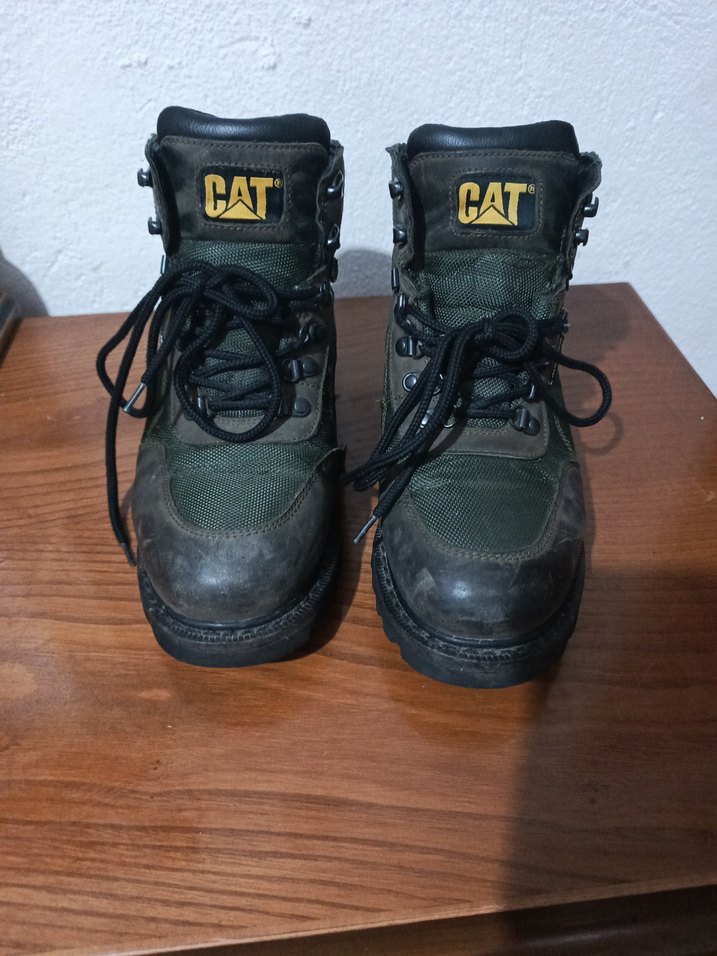 Kahverengi kauçuk CAT botlar, dolgu topuk ve tokalı detaylara sahip, trend günlük dış mekan kullanımı için uygundur. Düz renk ve bağcıklı ön tasarımla öne çıkar.