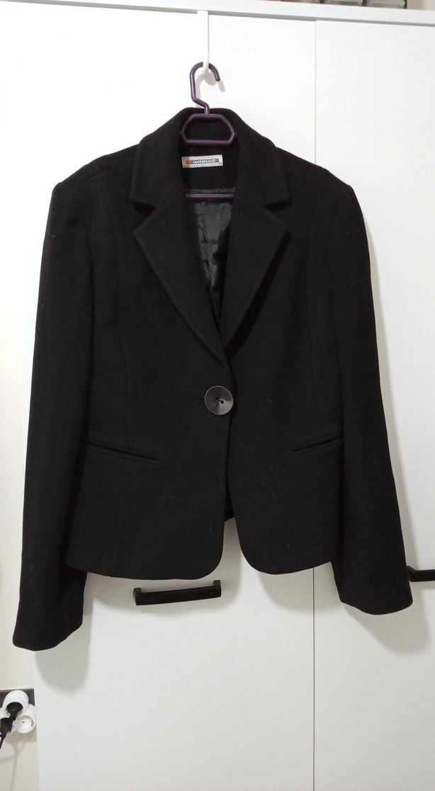 Siyah kalem kumaştan, düğmeli, uzun kollu, normal kesim ve midi boy kadın blazer. Ofis kullanımı için uygundur.
