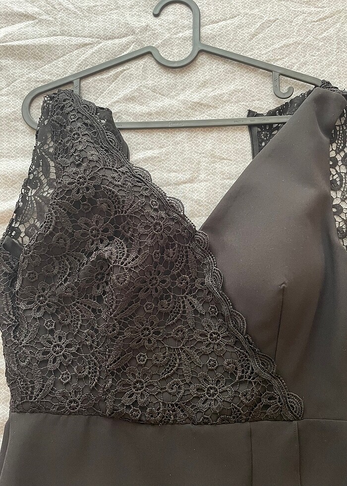 Siyah kalem elbise üst detaylı dantelli söz için giyilmiştir bir kere sadece elbisenin arkasında fermuar çıkmıştır oda terzi işinde halledilir hemen etek tarafı detaylıdır