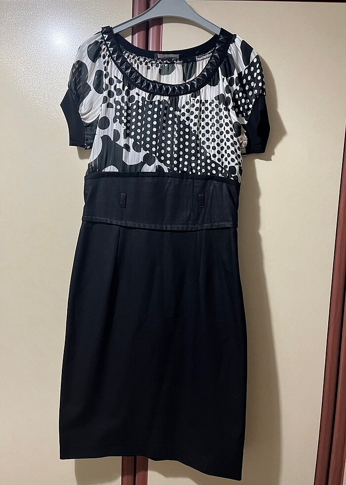 Siyah desenli kalem elbise 38 beden. 1 veya 2 kez kullanıldı temizdir yandan fermuarlı arkasında yırtmaç mevcuttur