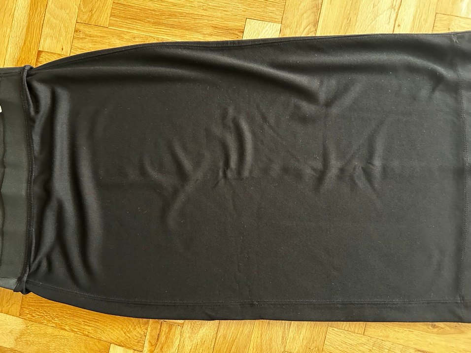 Siyah, diz altı midi boyda, normal uzunlukta ve vücuda oturan bu eteği, yumuşak yapay kumaştan üretilmiş olup günlük kullanıma uygundur, dokusu ince penye