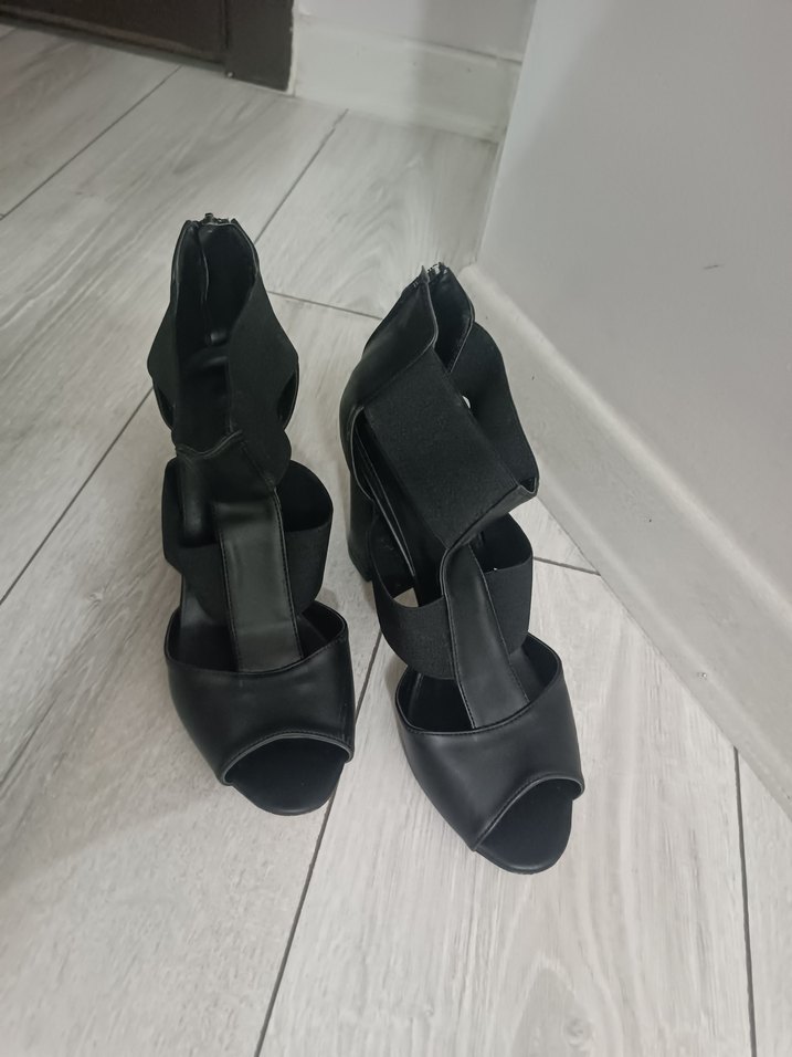 Siyah topuklu, kauçuk malzemeden yapılmış minimalist gotik tarzda kadın ayakkabısı. Ofis ortamına uygun, moda ve avangart bir görünüm sunar. 8 cm topuk boyu