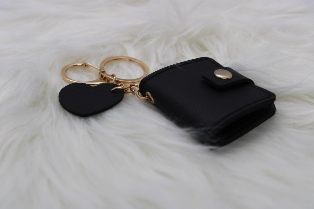 Siyah kalp detaylı fotoğraflı kadın anahtarlık