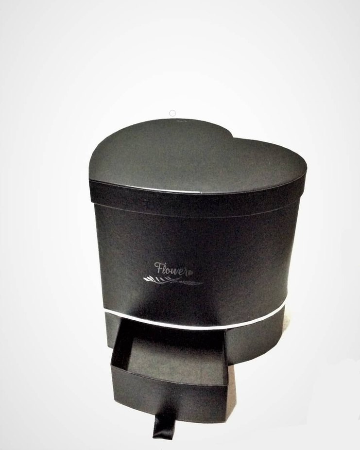Siyah kalp şeklinde makyaj organizeri, çekmecesi ve üzerinde 'Flowere' yazısı bulunur. Kozmetiklerinizi düzenlemek için kullanışlıdır.