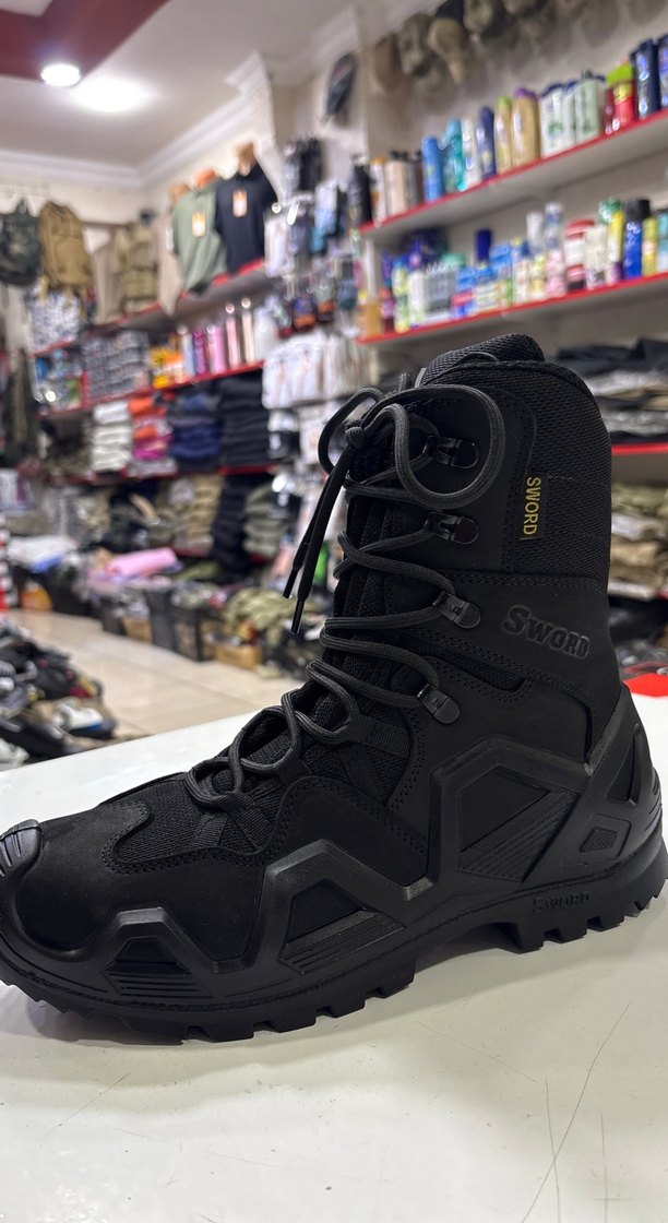 Siyah , cırt cırt ve bağcıklı siyah kauçuk erkek bot. Sokak stili ve rock punk havası için uygun. Tüm numaraları mevcuttur