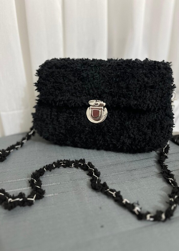 Siyah kanvas çanta el emeği kuzu ip istenilen renk sipariş alınır