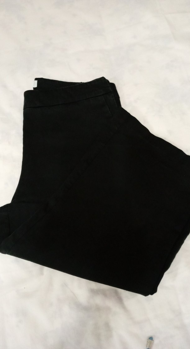 Siyah kanvas kumaştan, dizaltı boyda, dar kesim kadın pantolon. Goth ve athleisure tarzını yansıtan sade bir modeldir, bermuda formunda kaliteli iç göstermeyen kumaştır, hasarı yoktur